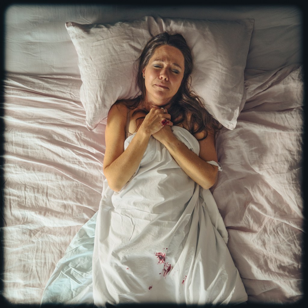 “Written in a deliberately high key – to offer the sensation of that high pitched quality we sometimes get in our voices when we are trying to deny something. The sparse music is uncomfortably dissonant with an off-key drone in the mix to give that sensation of the blood rushing in our ears as she experiences the shock. This was a harrowing song to write. Using the method acting techniques which includes the use emotional substitutions, I allowed myself to access the most significant and devastating losses of my life. I cried throughout the entire writing process. It was an emotional song to record.”